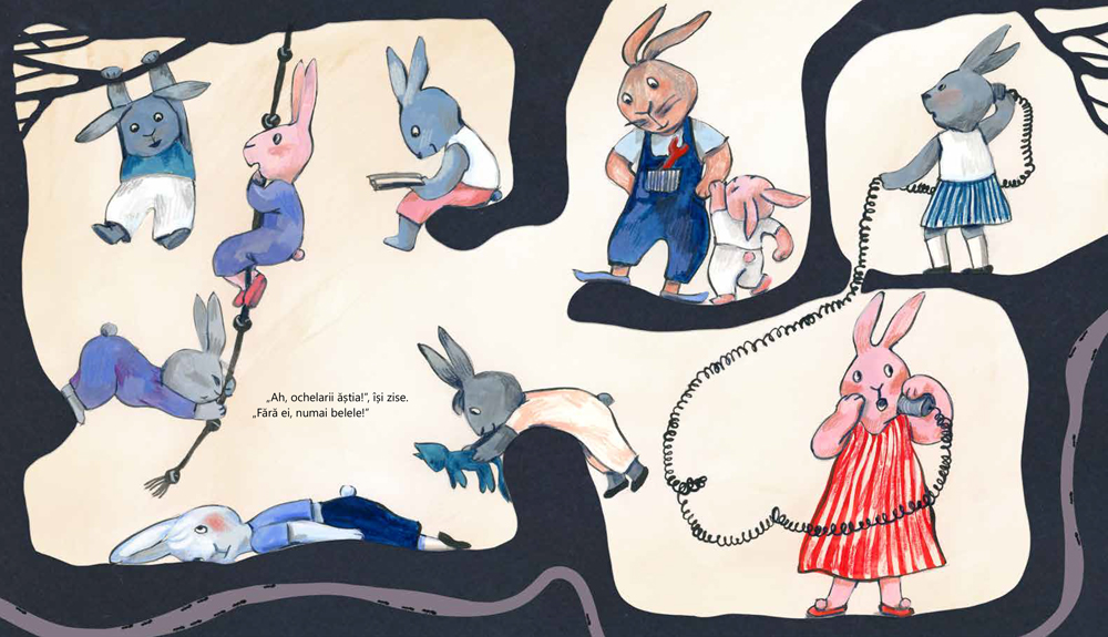 I won the illustration contest, but no one knew why I had also written a story, since it wasn’t required—that was the brief for the authors. Out of this incubator-competition came the book What a Surprise!, written by Simona Epure, published by Cartea Copiilor in 2019. I’m leaving a few illustrations from it here—maybe you remember them.